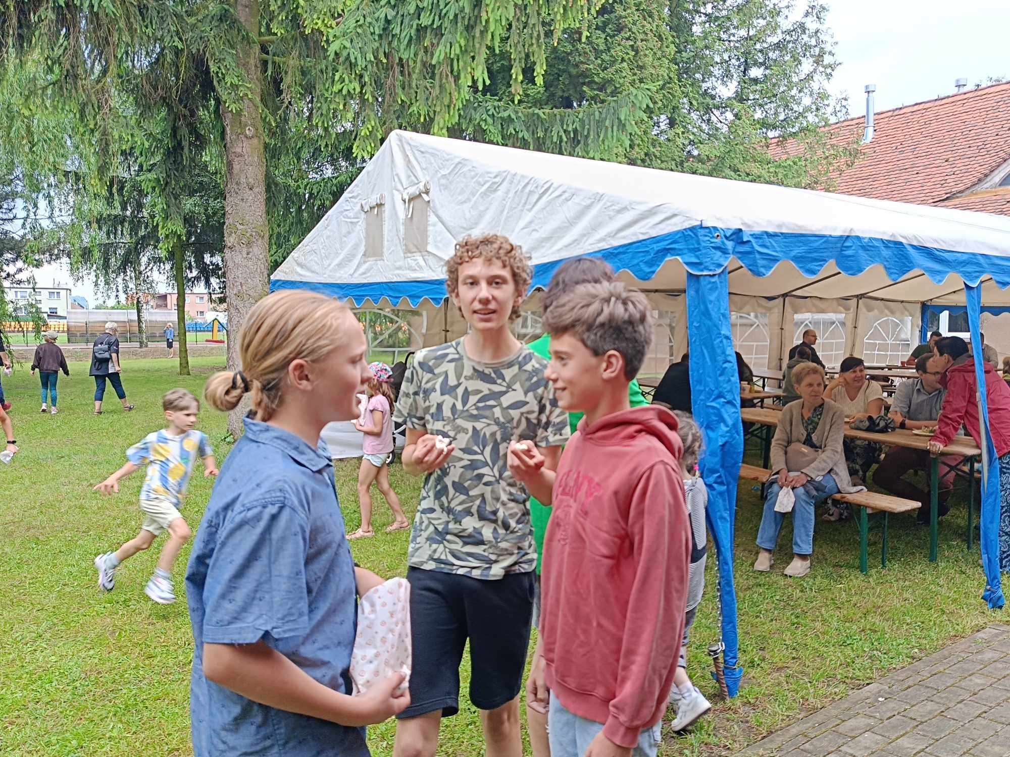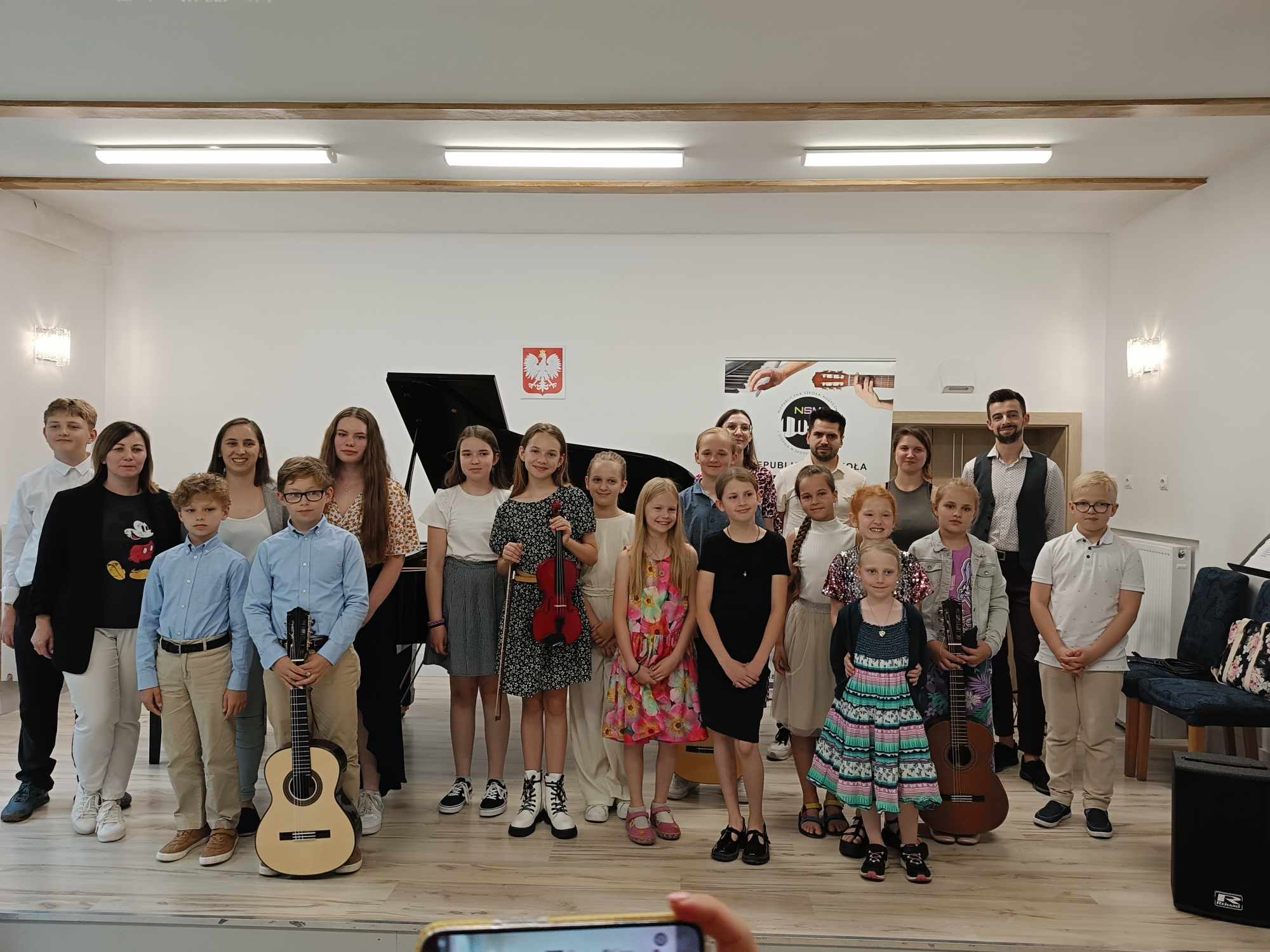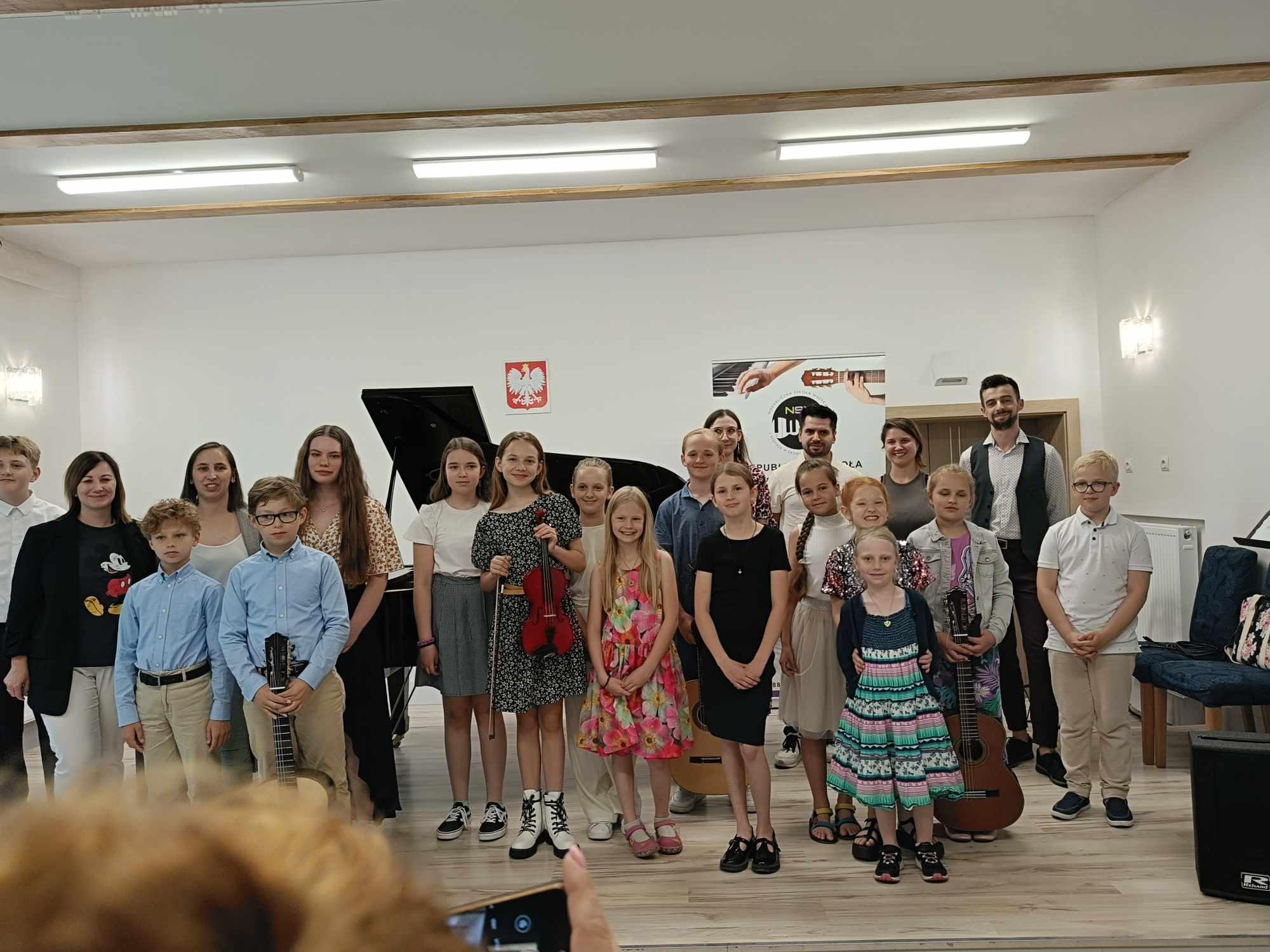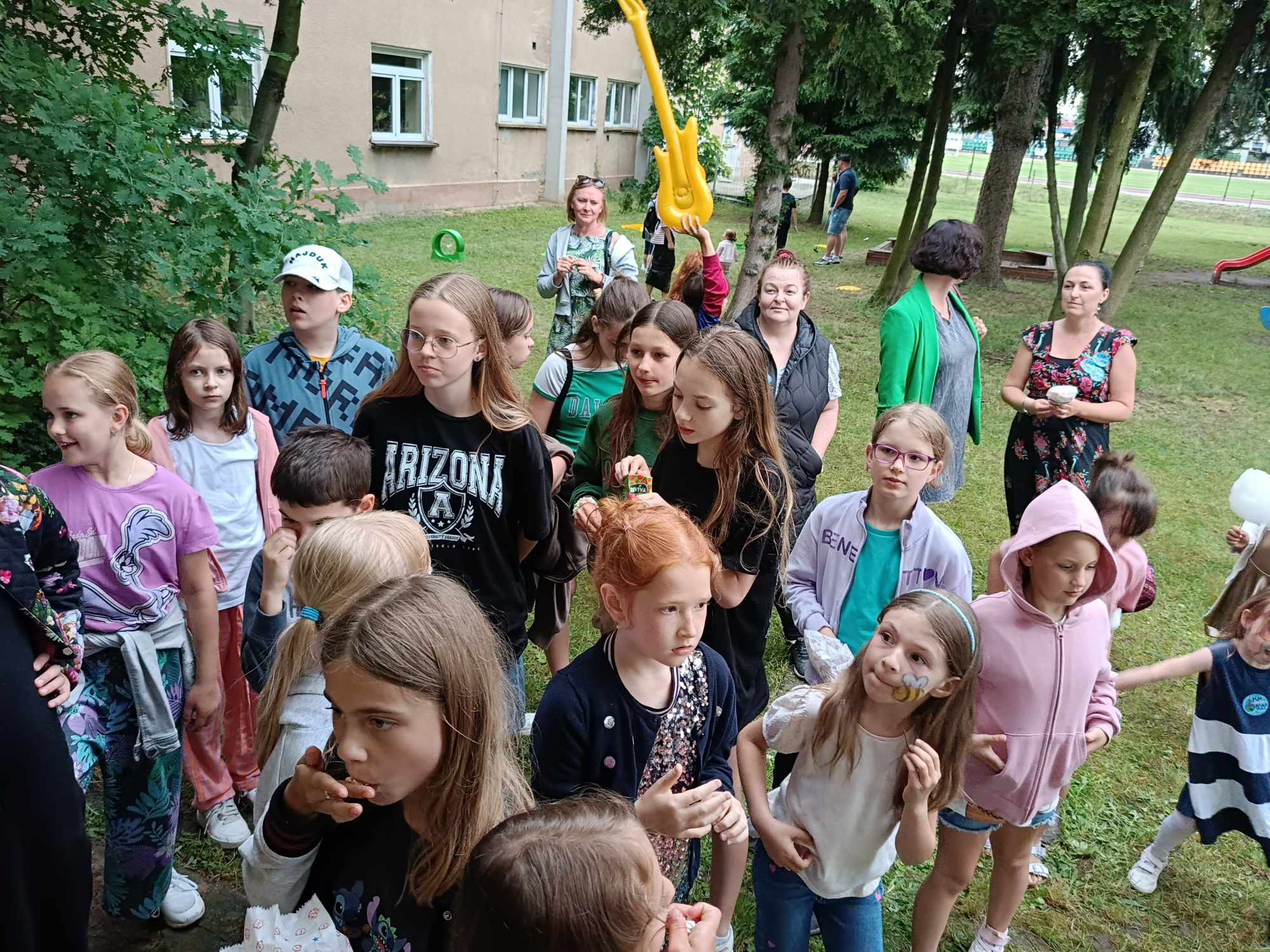To były emocje nie do zapomnienia. Festyn zainaugurował koncertem w wykonaniu naszych uczniów. Dźwięki muzyki oraz wspaniałe bajkowe (i nie tylko) utwory, a także występy wokalne pozwoliły słuchaczom zrelaksować się przed „wybuchem” euforii na festynie. Ileż było radości. Mimo, że wcześniej pogoda uraczyła nas burzą, to festyn jednak odbył się, bo społeczność szkolna deszczu się nie boi. W związku z czym uczniowie wraz z rodzeństwem i rodzicami mieli okazję skorzystać z wielu atrakcji. Zabawy i gry w minigolfa, bańki mydlane, malowanie twarzy, a szczególnym powodzeniem cieszyła się „Fotobudka”, gdzie przy muzyce można było potańczyć. Jednakże radość wraz z adrenaliną rywalizacji wzbudziła zabawa w „Jaka to melodia” – nauczyciele kontra uczniowie, także przy czynnym udziale rodziców, którą prowadziła dyrektor szkoły mgr Marta Gorczyca. I kto wygrał? Oczywiście, że uczniowie Niepublicznej Szkoły Muzycznej I Stopnia w Środzie Wlkp. Natomiast dla uczty żołądka, by sił nie zabrakło, można było skosztować kiełbaski z grilla wraz z pyszną surówką, kawa i herbata oraz soczki dla dzieci, placki, wata cukrowa i popcorn. Należy dodać, że najzdrowsza i pyszna średzka woda, która każdemu życia doda.