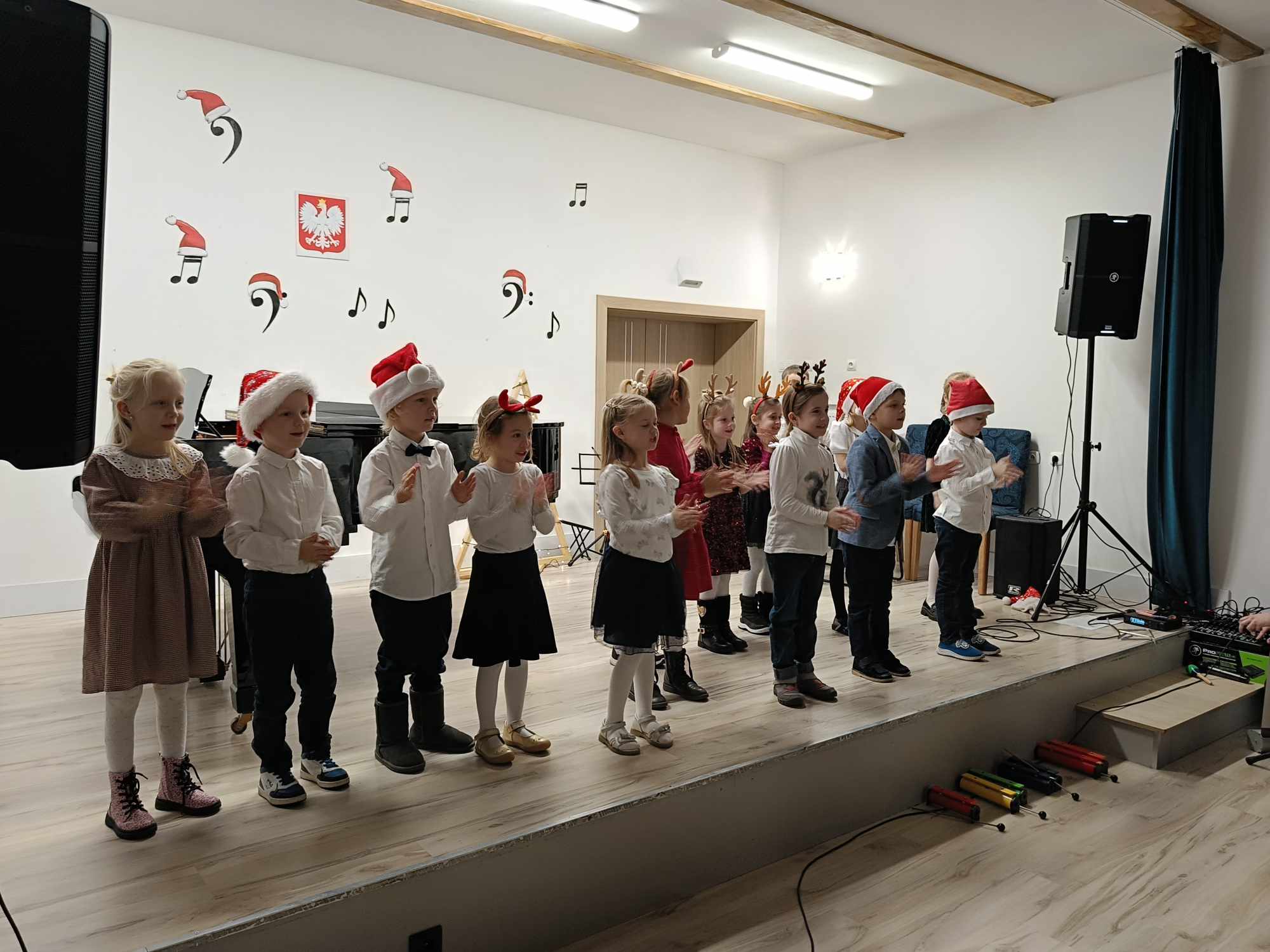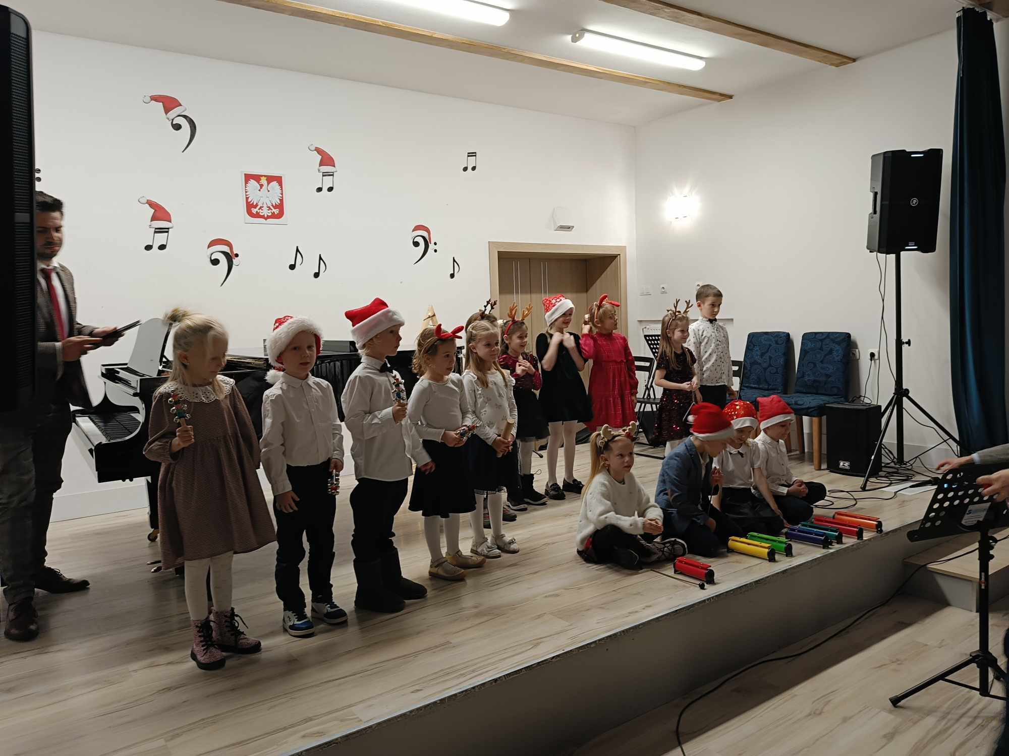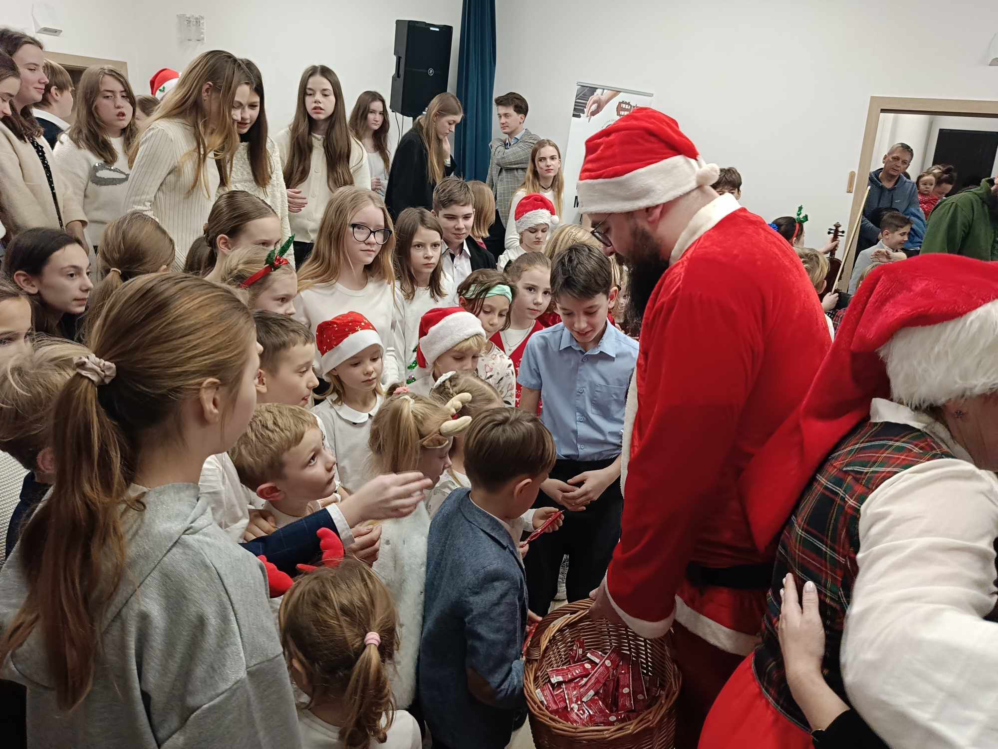 Na scenie wystąpili uczniowie naszej szkoły i grupa zerówkowa, zespół gitarowy i skrzypcowy, duety, trio oraz wokaliści. Cała społeczność szkolna, a szczególnie Rodzice ze wzruszeniem wsłuchiwali się w występy swoich dzieci. Na koniec tradycyjnie wszyscy zgromadzeni na sali wspólnie zaśpiewali kolędę „Cicha noc”, po której zjawił się św. Mikołaj ze słodkimi upominkami dla dzieci. Po koncercie był słodki poczęstunek dla wszystkich, który ufundował Powiat Średzki, a za który serdecznie dziękujemy. Najważniejsze jednak jest to, że panował świąteczny nastrój owiany melodią kolęd i pastorałek z nutką magii świąt.