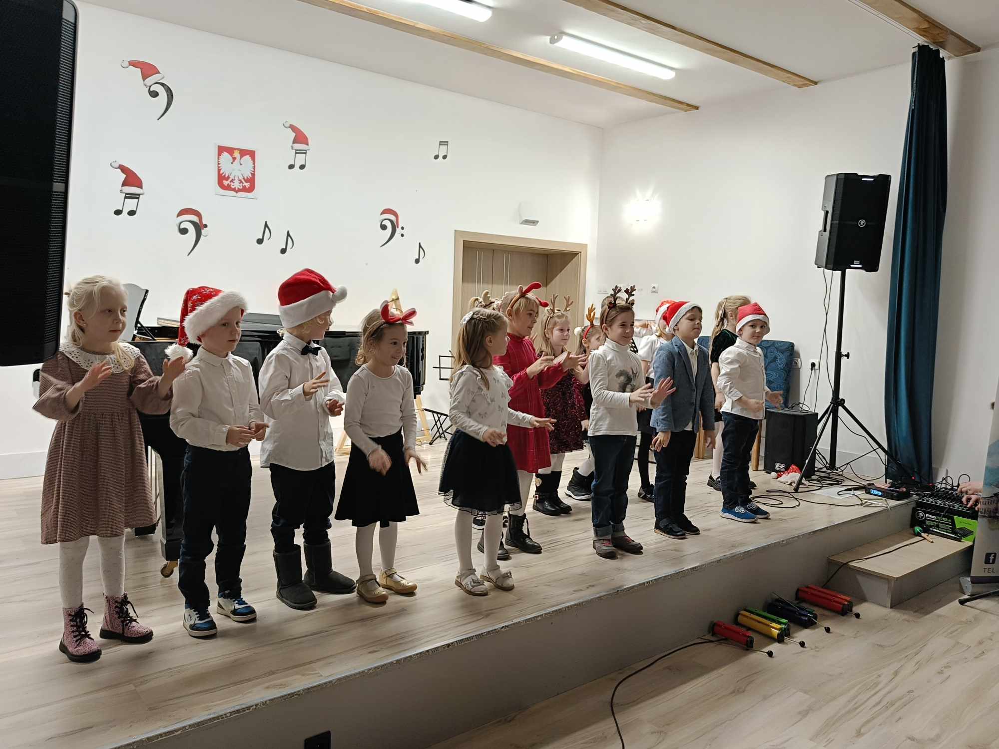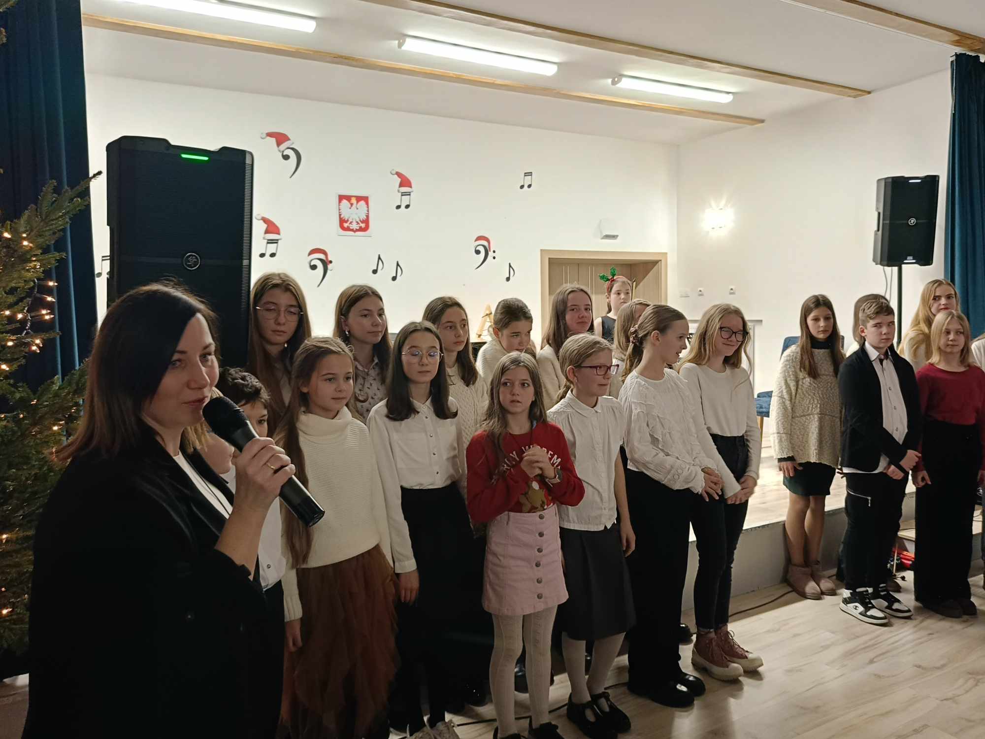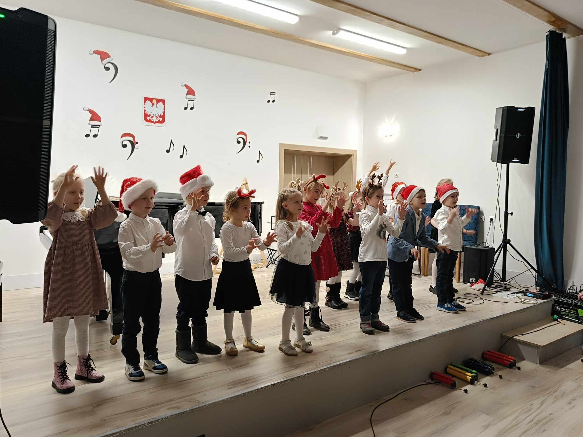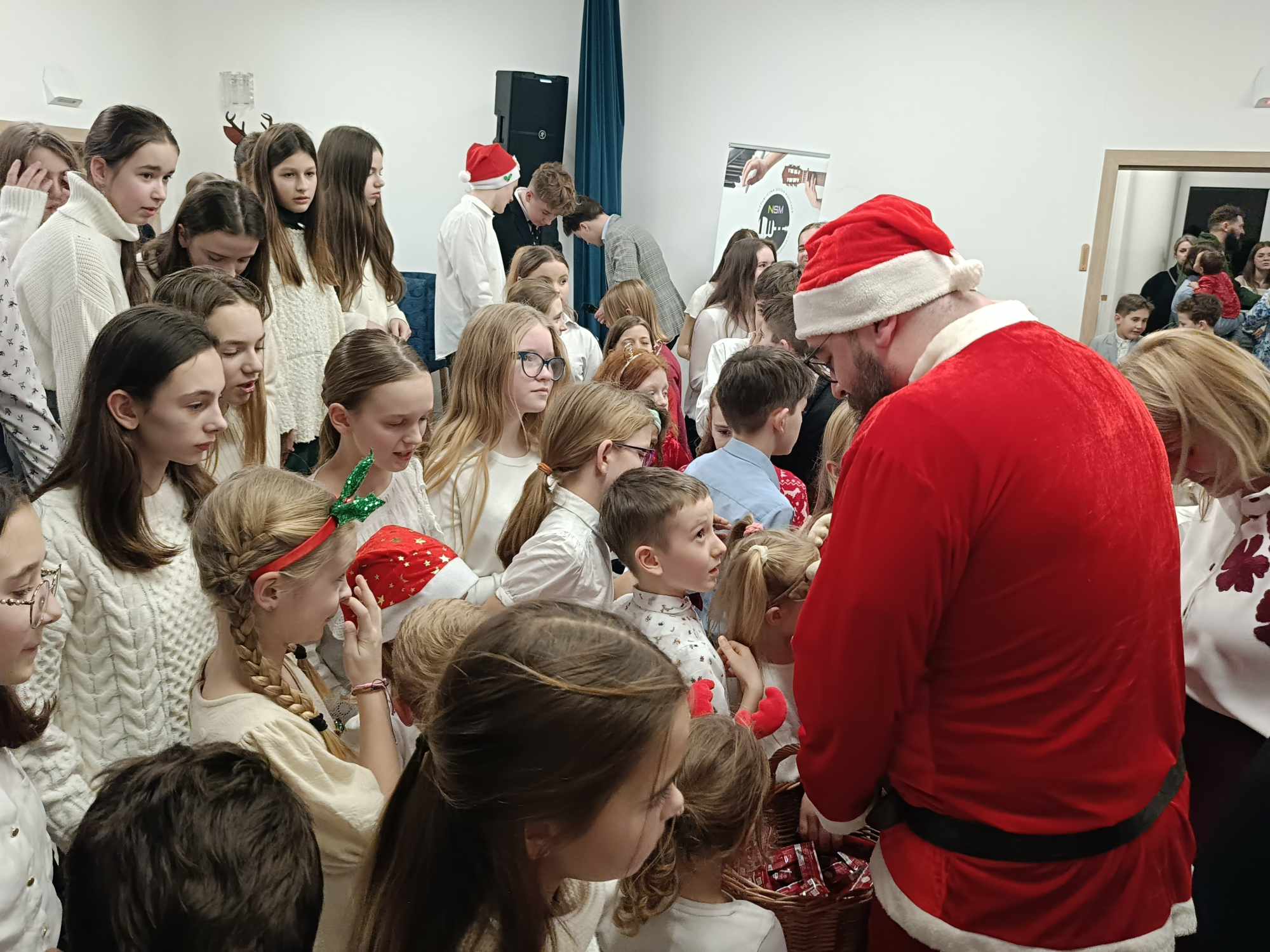 Na scenie wystąpili uczniowie naszej szkoły i grupa zerówkowa, zespół gitarowy i skrzypcowy, duety, trio oraz wokaliści. Cała społeczność szkolna, a szczególnie Rodzice ze wzruszeniem wsłuchiwali się w występy swoich dzieci. Na koniec tradycyjnie wszyscy zgromadzeni na sali wspólnie zaśpiewali kolędę „Cicha noc”, po której zjawił się św. Mikołaj ze słodkimi upominkami dla dzieci. Po koncercie był słodki poczęstunek dla wszystkich, który ufundował Powiat Średzki, a za który serdecznie dziękujemy. Najważniejsze jednak jest to, że panował świąteczny nastrój owiany melodią kolęd i pastorałek z nutką magii świąt.