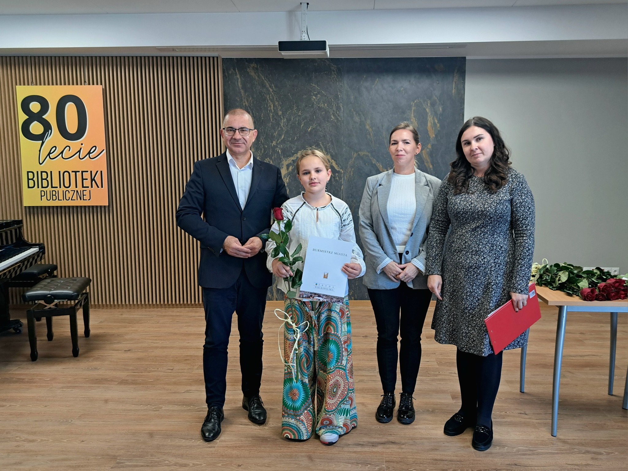 Dziś w Bibliotece Publicznej w Środzie Wielkopolskiej odbyła się uroczystość, w ramach której Burmistrz Piotr Mieloch wręczył osiem nagród za wysokie osiągnięcia w dziedzinie twórczości artystycznej w roku szkolnym 2024/2025.