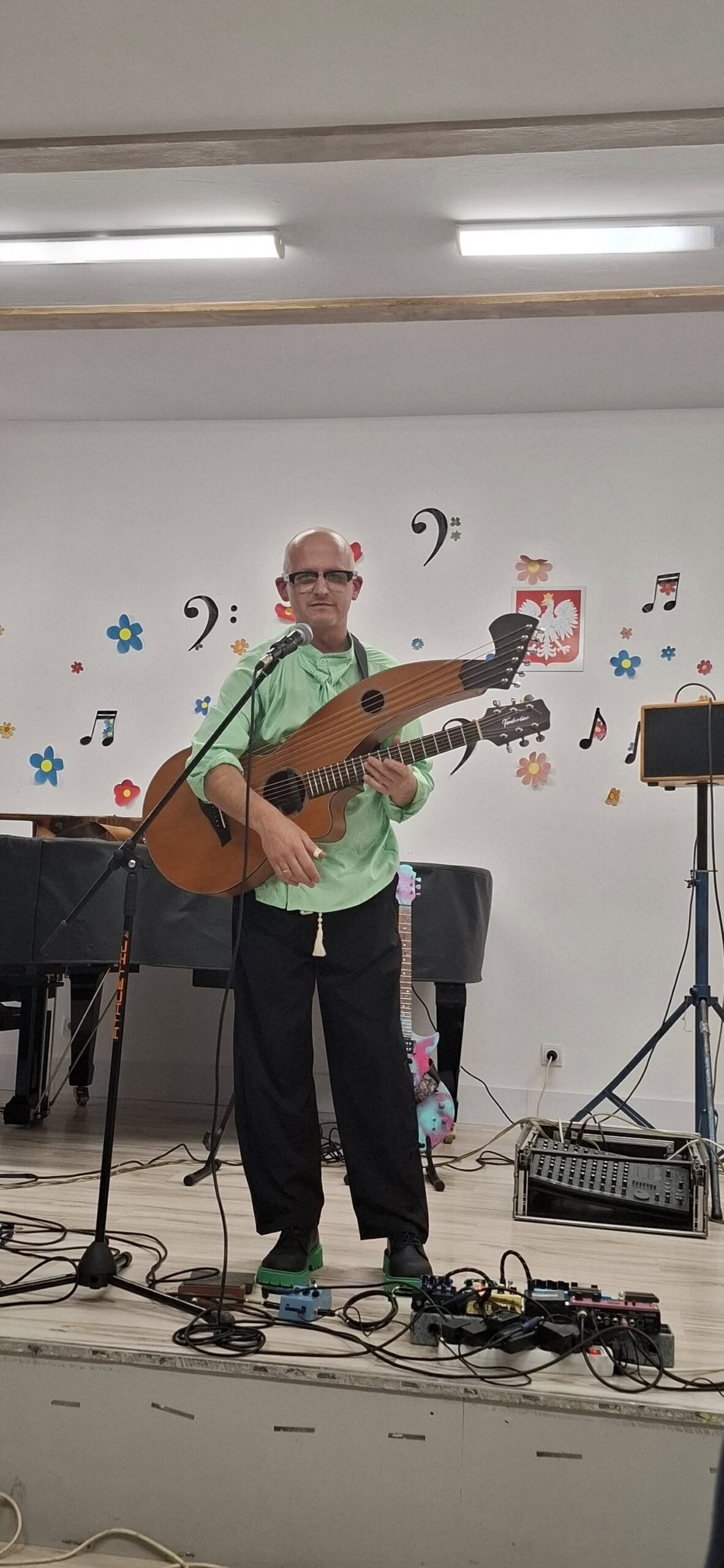 fingerstyle w wykonaniu znanego artysty, gitarzysty, kompozytora Piotra Restek Resteckiego, który już niejednokrotnie gościł w Środzie Wlkp. i w naszej szkole. To był koncert „dynamit”. Niesamowite dźwięki gitar rozbrzmiewały w murach całej szkoły
