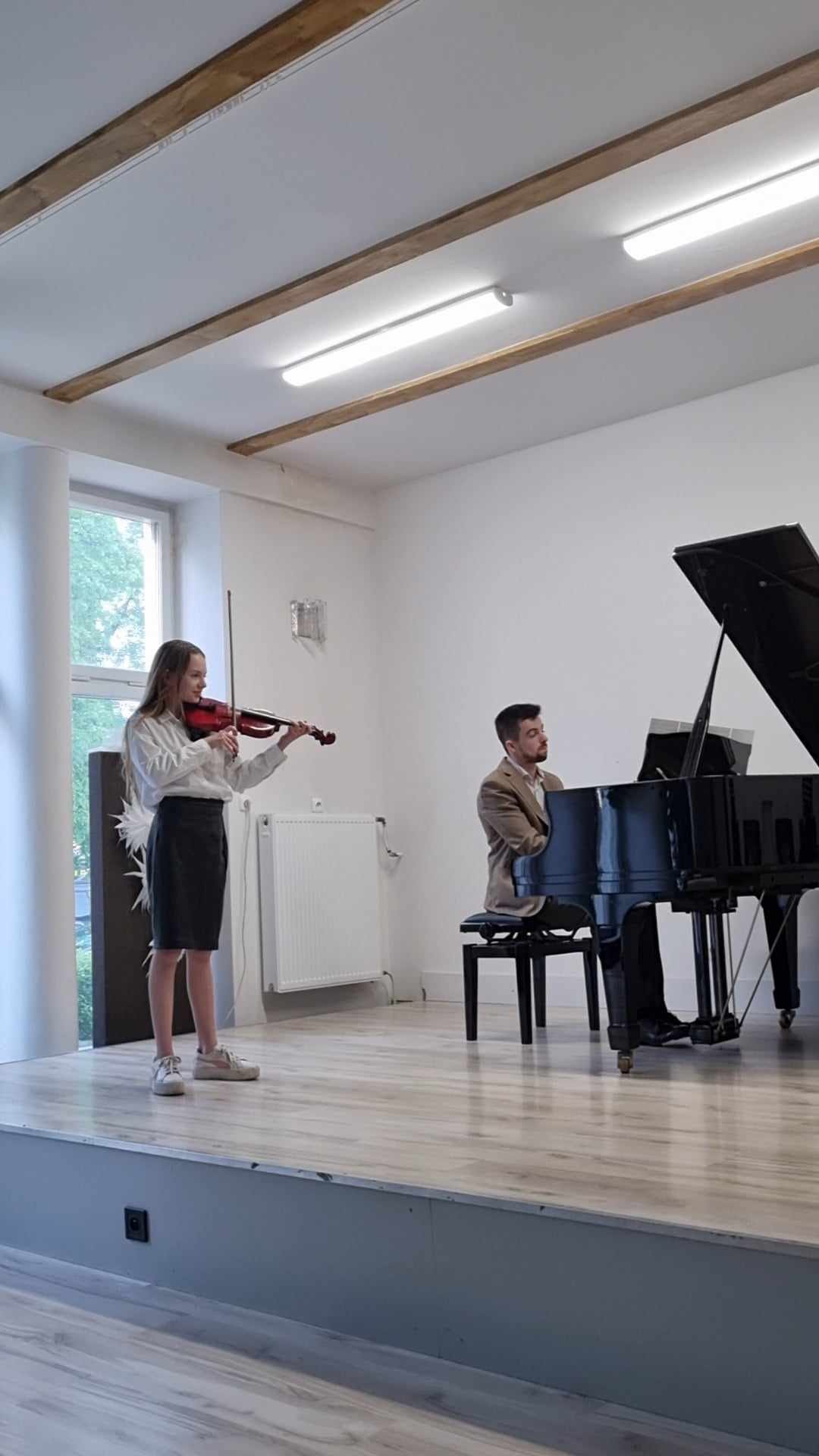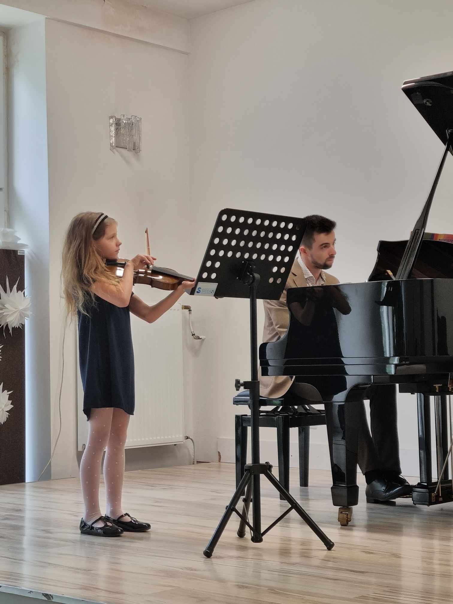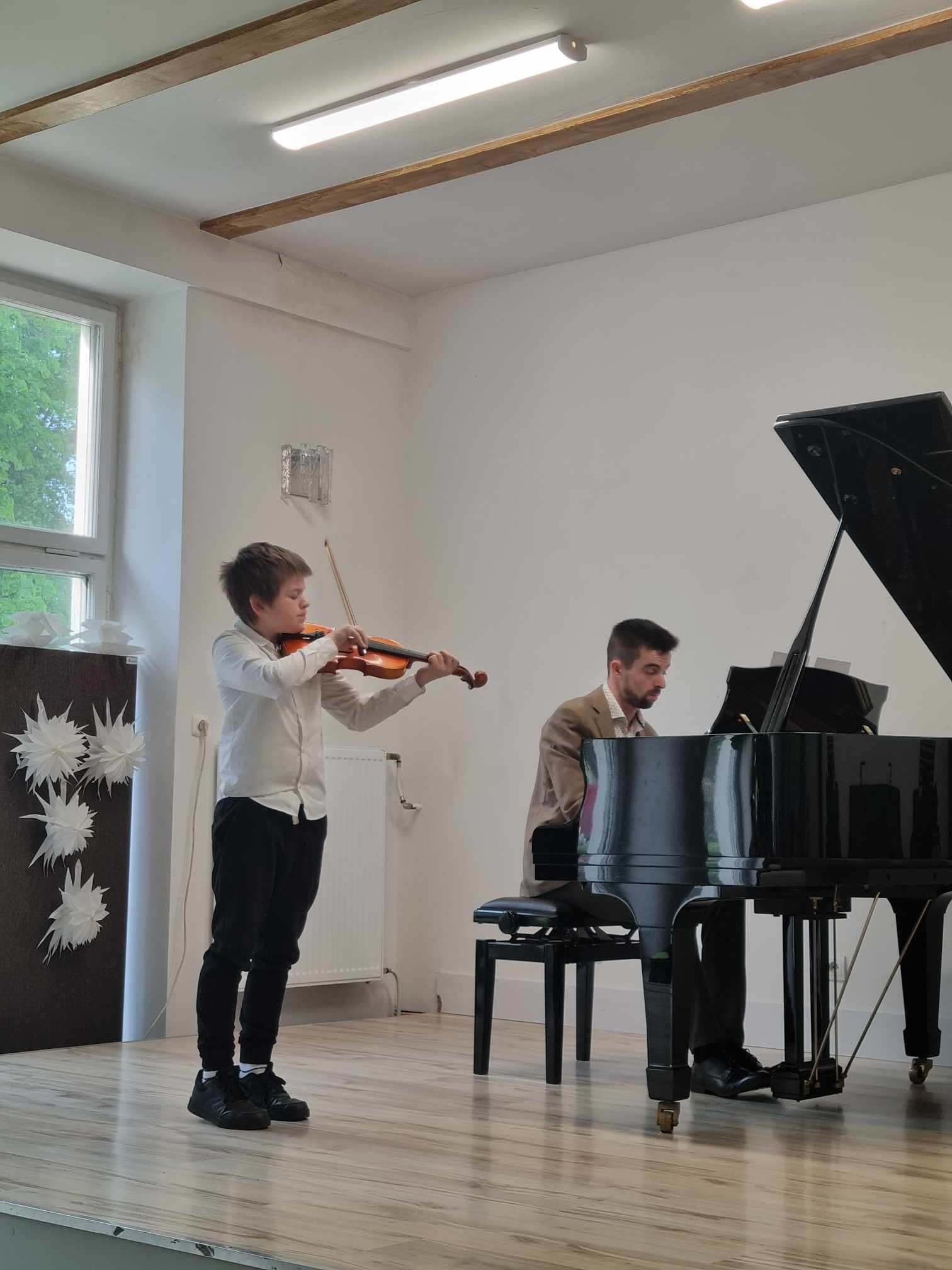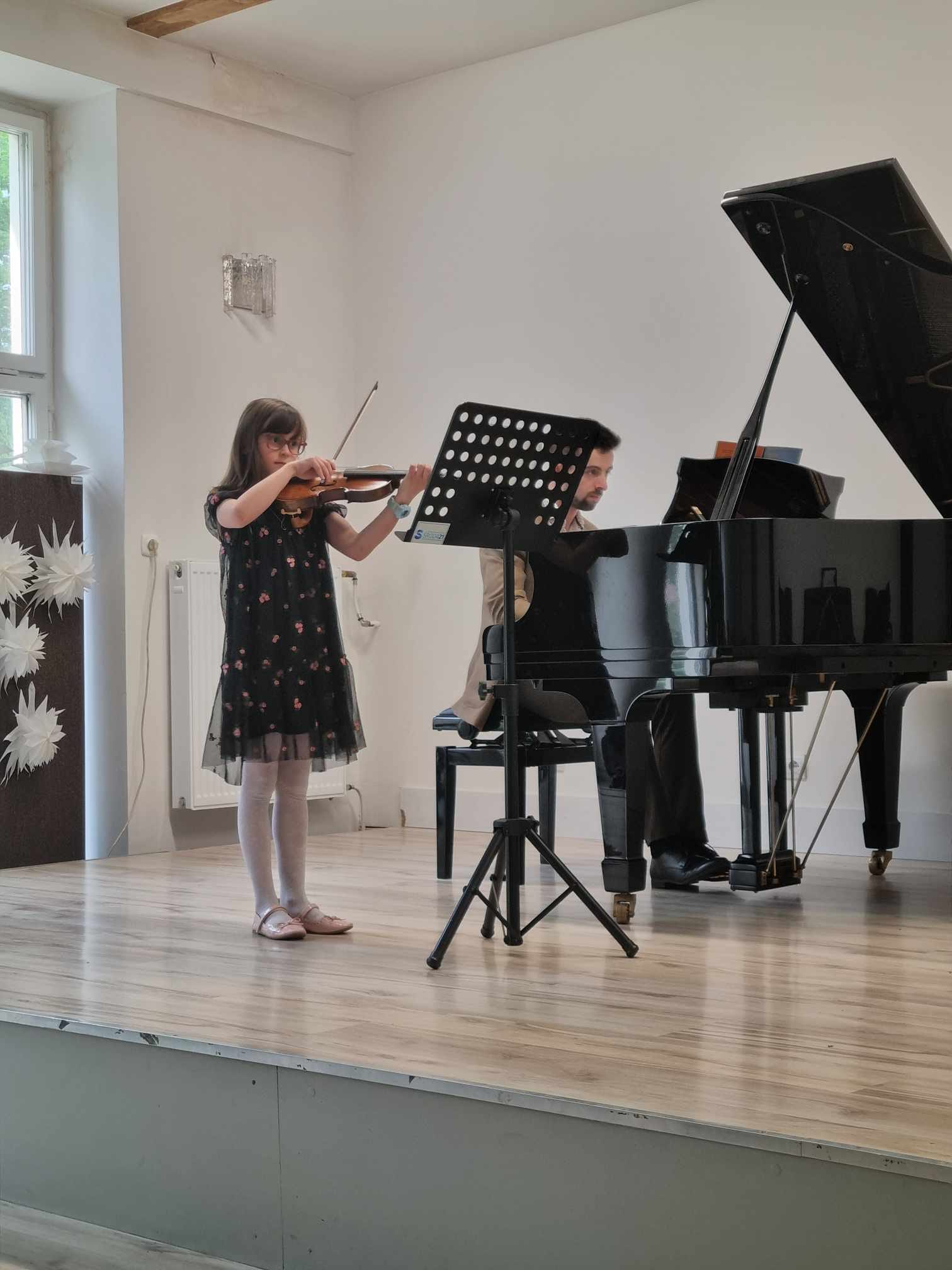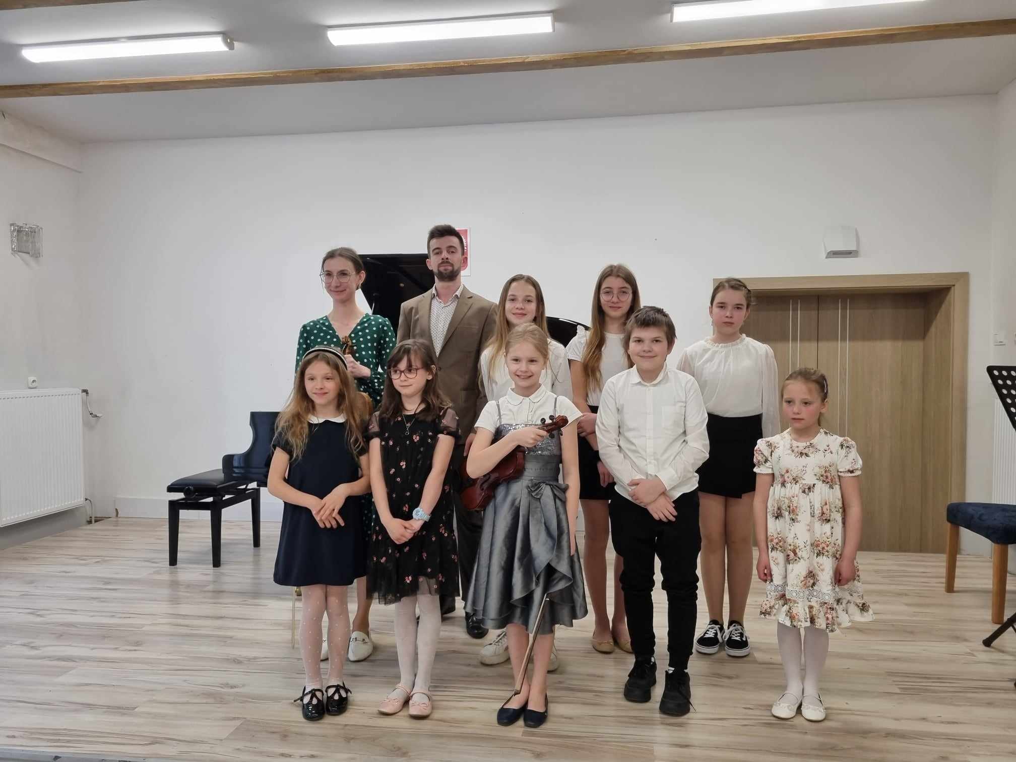 W poniedziałek 29 kwietnia 2024 r. w Niepublicznej Szkole Muzycznej I Stopnia w Środzie Wielkopolskiej odbył się kolejny wiosenny koncert, podczas którego na scenie zaprezentowali się uczniowie z klasy skrzypiec mgr Marty Lis oraz uczniowie z klasy fortepianu mgr. Szymon Chorobiński. Jak zawsze była to muzyczna uczta dla publiczności. Na zakończenie w duecie zaprezentowali się także nauczyciele mgr Marta Lis i mgr Szymon Chorobiński, którzy w swoim repertuarze zaprezentowali muzykę taneczną (z okazji Międzynarodowego Dnia Tańca) między innymi Tango i Mazurki. Gratulacje!